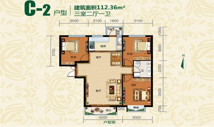 3室2厅1卫-户型C2