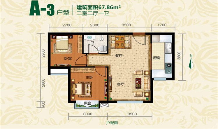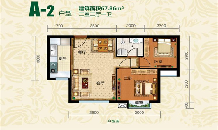 2室2厅1卫-户型A2