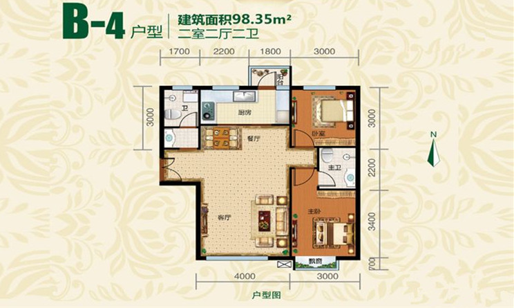 2室2厅2卫-户型B4