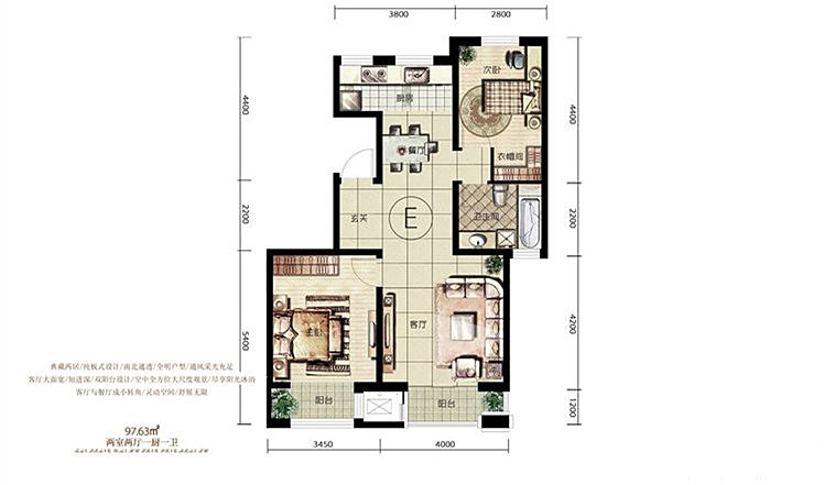 2室2厅1卫-E户型