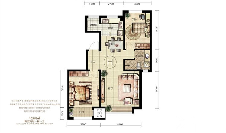 2室2厅1卫-H户型