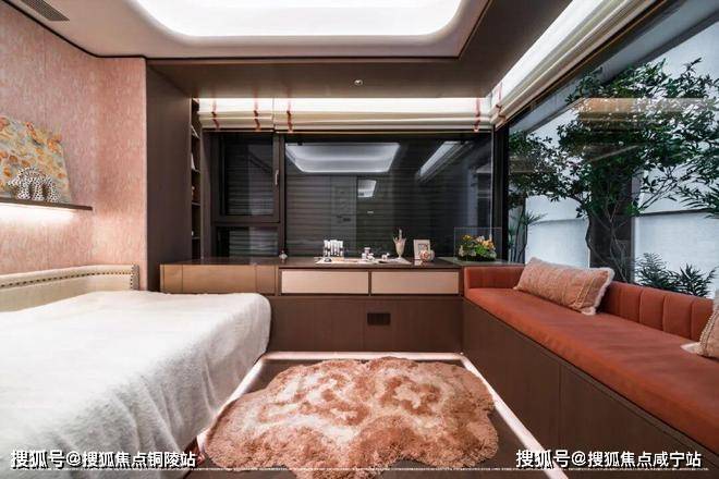 另外采用意大利 “大花白”天然石材实现地墙满铺,双台盆与双镜柜的对称设计复刻五星酒店规制,美妆冰箱精准控温呵护护肤品,奢华至极!