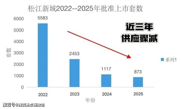 2022年,松江新城的新房供应为5583套新房。随后逐年走低,2023年2453套,2024年1117套,到了今年仅有837套。