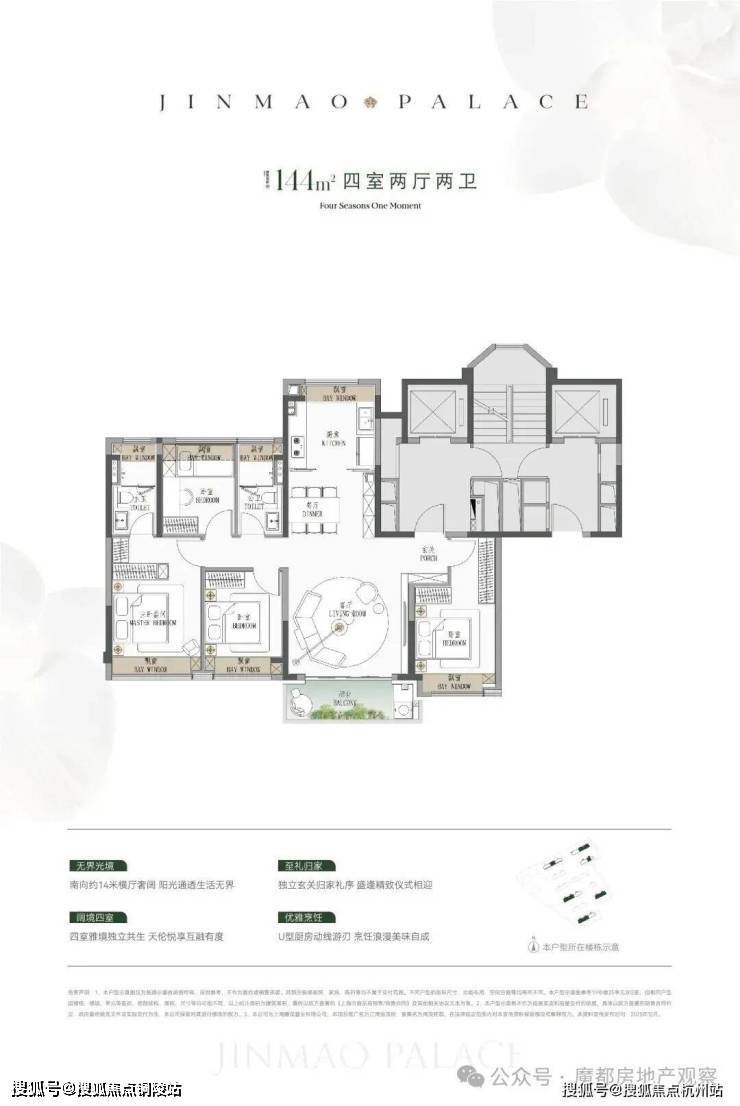 ●建面约144㎡4房:同价格在杨浦只有百平米3房可选。