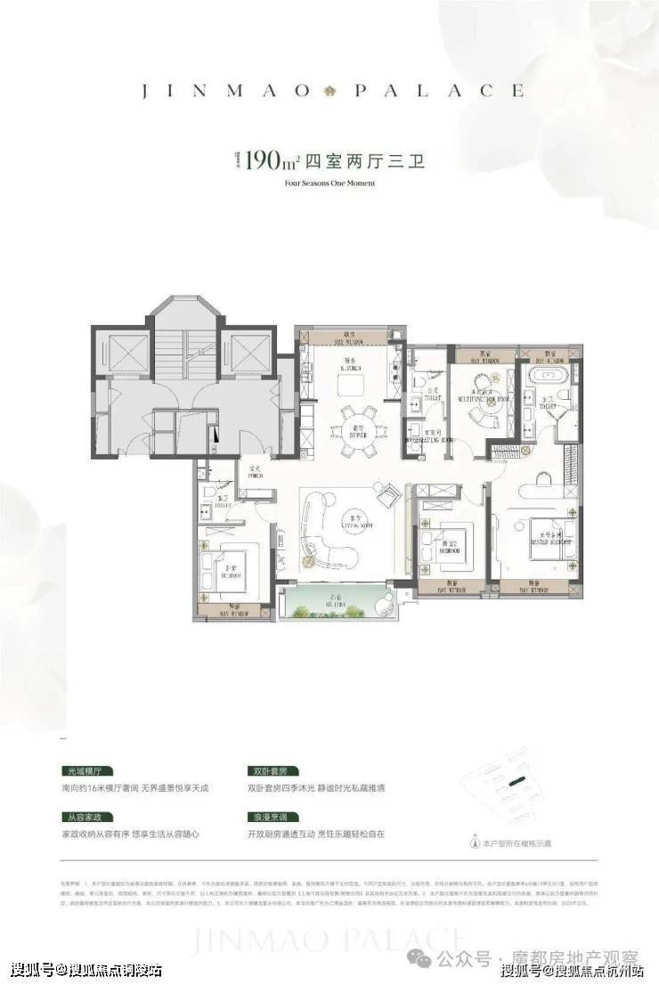 ●建面约190㎡4房:楼王位置的顶奢大平层,同价位段在杨浦只能买到约120㎡3房!