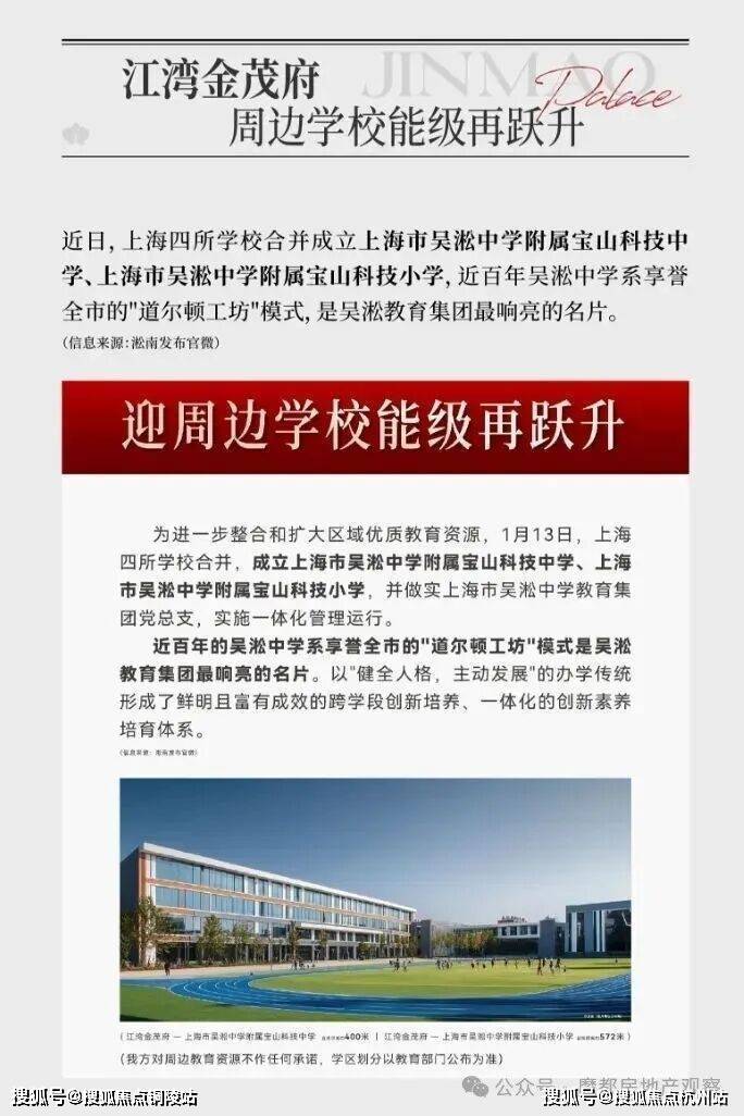 4、优质教育集群,是价值最深厚的“压舱石”当板块内的教育资源通过战略合并与整合实现能级跃升,其带来的不仅是教育选择的优化,更是区域价值的深层加固。优质学校的聚集,始终是资产穿越周期最坚实的保障,为社区提供着持续而稳定的内生动力。上海四所学校合并成上海市吴淞中学附属宝山科技中学、上海市吴淞中学附属宝山科技小学两所重点学校,这将为江湾金茂府的未来价值提供重要支撑。