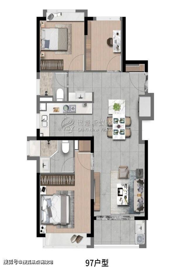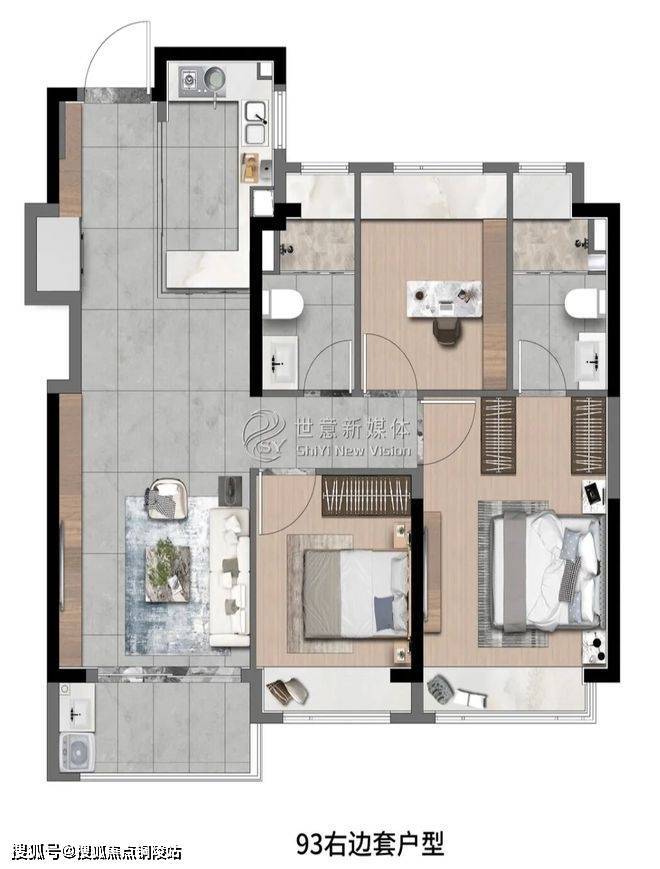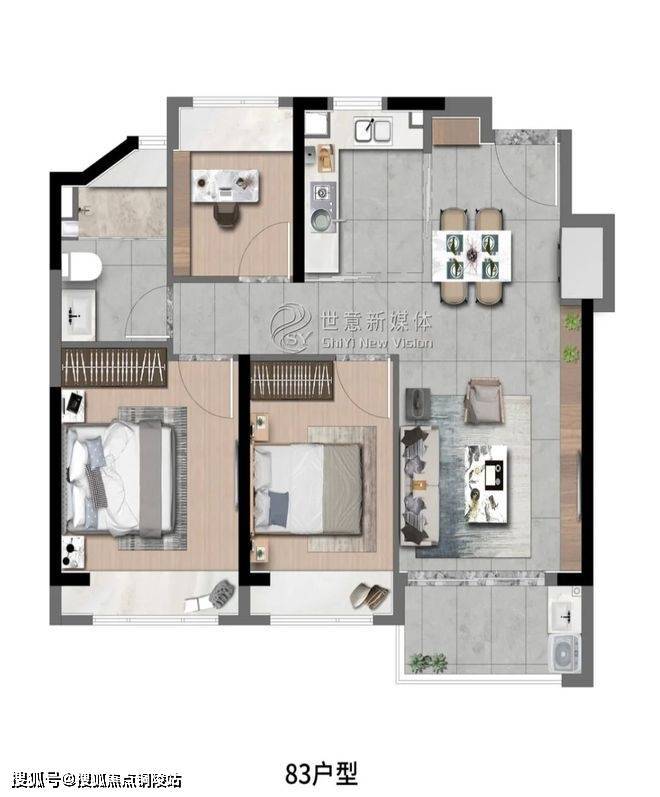 象屿深入考量空间与场景的运用,将生活中看得见与看不见的细节进行了细致打磨。玄关、阳台、厨房、卫浴均设置科学收纳空间,营造高品质生活体验的同时,更带给居者层建面约83㎡3房2厅1卫