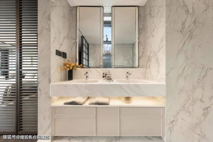 大量的雅士白大理石、大花白岩板、皇家孔雀岩板、水纹夹丝玻璃、仿洞石岩板、卡拉卡塔白岩板等等,极尽奢华!