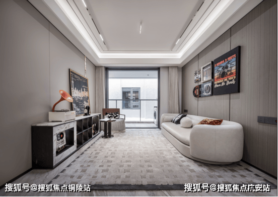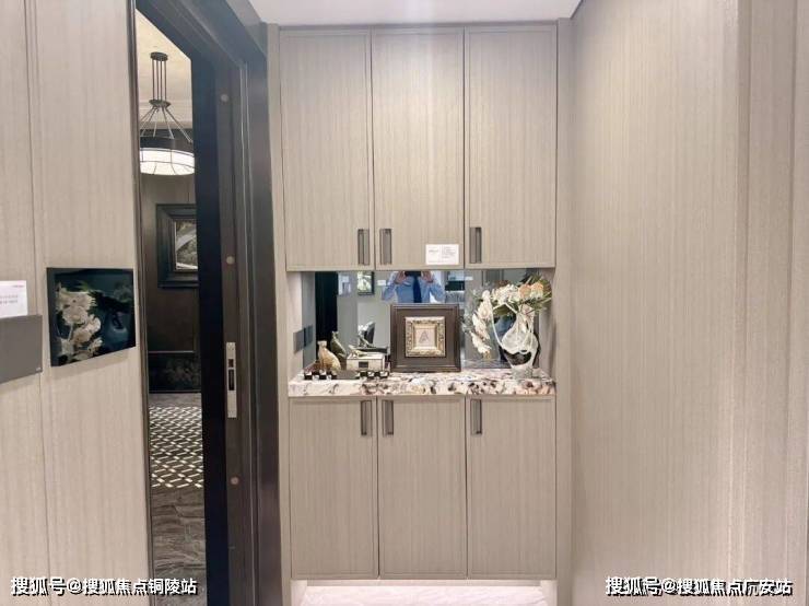 餐厅区域放置一个餐边柜,同样选用了雪山飞狐奢石做透光台面设计,餐边柜在收纳储物方面具有显著作用。