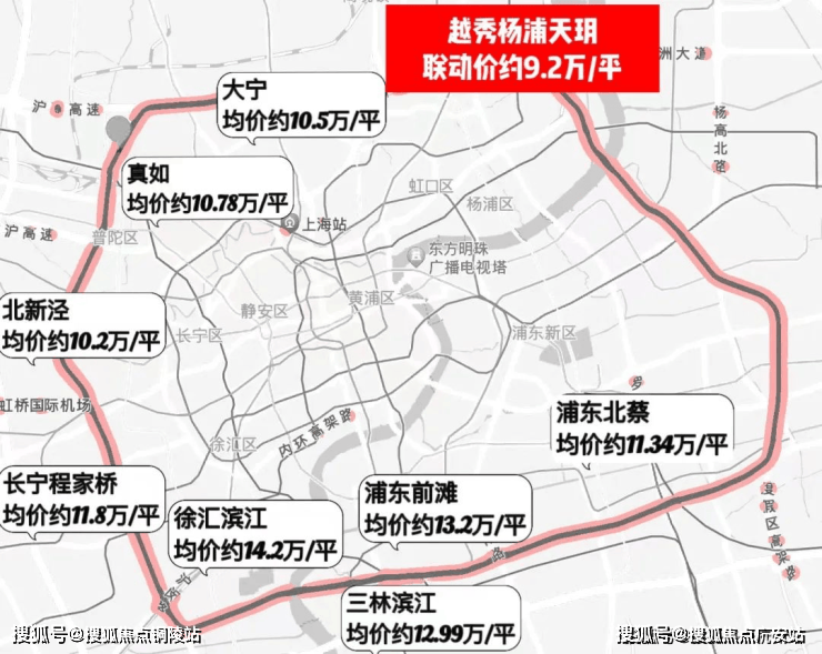 在市区,购房的门槛已经变得异常高昂。观察上海中环周边的热门区域,房价普遍攀升至每平方米10万至13万之间。例如,大宁的新房均价已达到10.5万元,真如的新房均价约为10.78万元;徐汇滨江的房价约为14.2万元;前滩的房价约为13.2万元;北蔡的房价也已达到每平方米约11万元。对于那些渴望在中环附近置业的朋友们来说,杨浦区已成为少数几个性价比相对较高的区域之一。特别是北中环沿线附近的越秀·杨浦天玥,其均价为每平方米9.2万元,尤为引人注目。