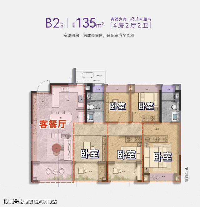 但高附赠只是“基本功”,其真正的王牌在于“可生长户型”。项目创新采用“承重墙归边”设计,解放了室内大部分墙体,让空间能伴随家庭成长而自由变化。
