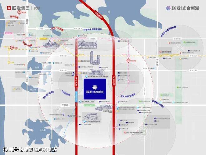 联发·光合新澍落子关山大道核心段,坐拥关山醇熟配套与“环华科大创新发展带”发展红利。关山大道直接与华科大相连,是光谷第一条主干道、首条产值过千亿的城市道路,也是光谷产城融合程度最高的区域,持续吸引着高知年轻家庭涌入。