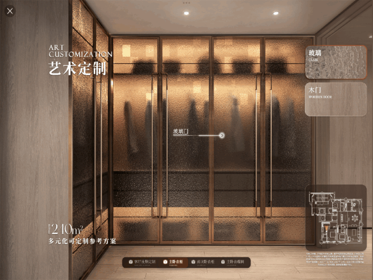 比如细节定制,衣柜柜门可择木质或玻璃款,门把手更备白雪公主、贝母、青玉三种质感材质;