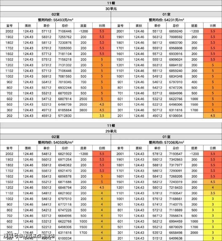 下图我将11号楼的楼层跳价和冬至采光时长做了结合,3点注意: