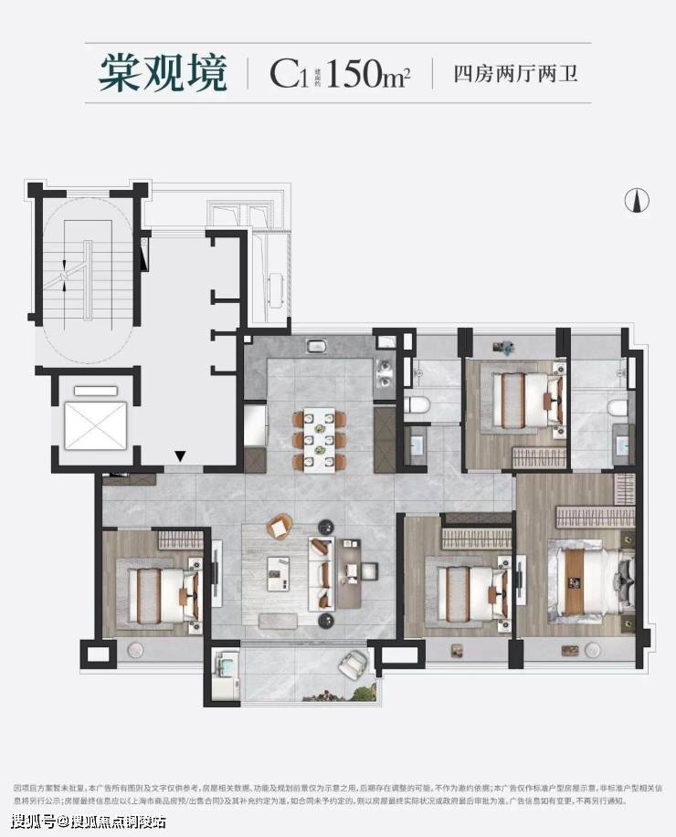 3. 建面约 150㎡ 四室两厅两卫:大平层的奢享体验
