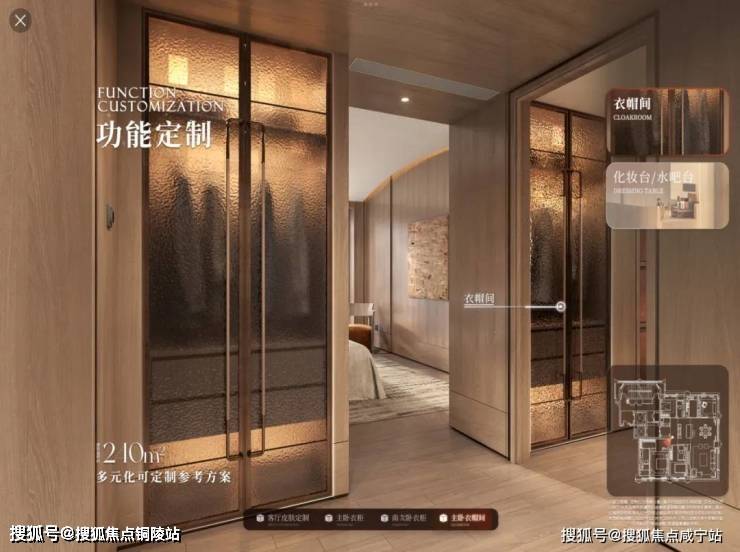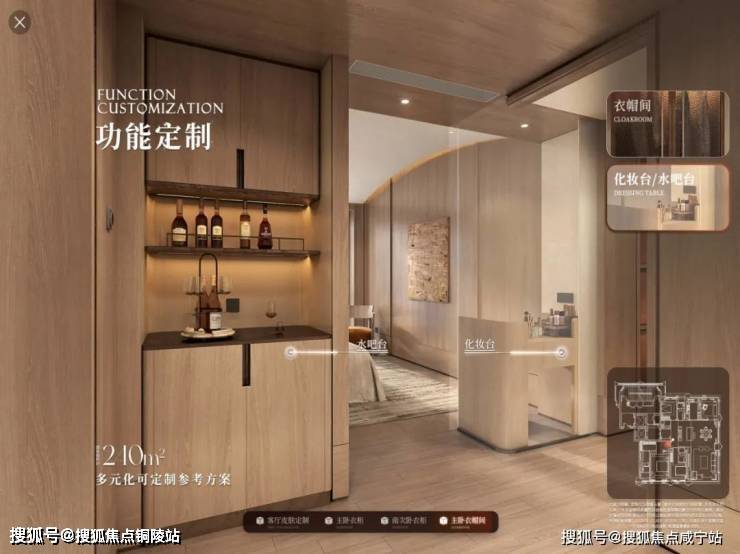 甚至还有功能定制,以240㎡主卧衣帽间为例,提供整体收纳、化妆台、水吧台等多种布局,精准贴合个人生活习惯。