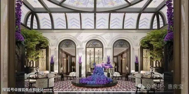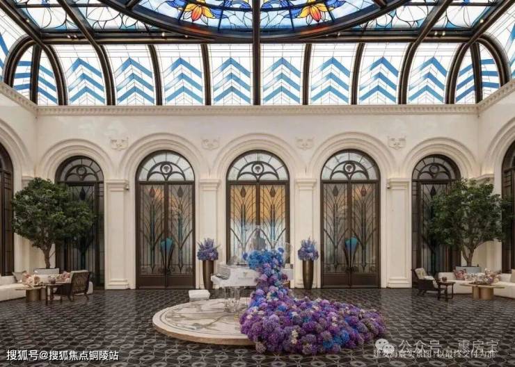 彩绘玻璃穹顶漫射柔和天光,浮映流光溢彩的艺术美韵,艺术拱门与浮雕墙面交替排列,诠释海派建筑兼容并蓄的内核,琴声朗朗,繁花烂漫,蓝紫色渐变描摹季节流转,构筑融贯自然、美学与温情的社交场域。