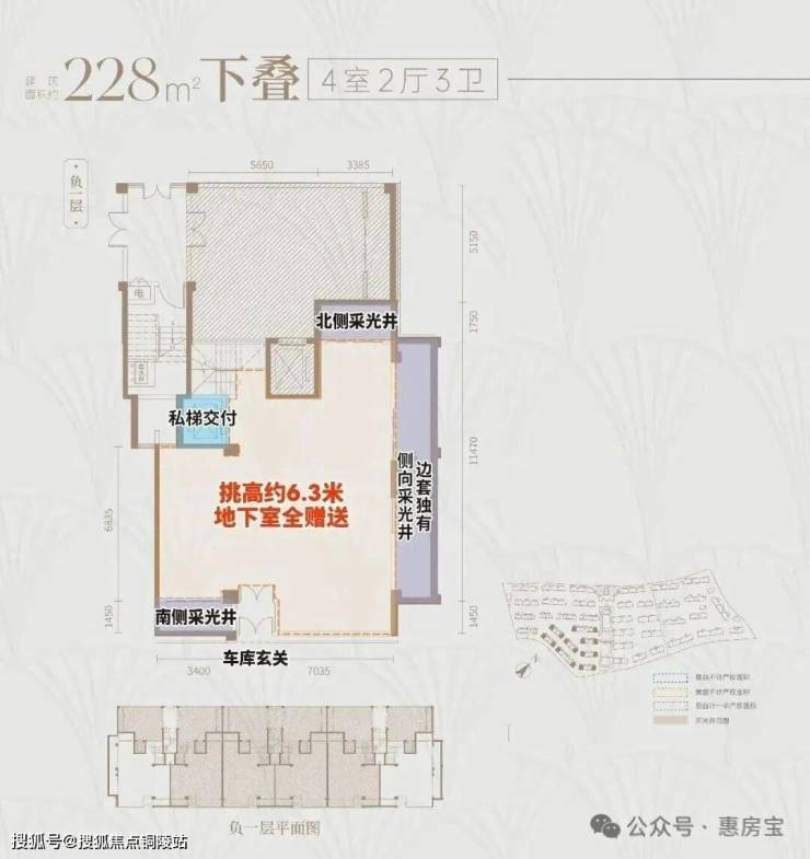 下叠户型地下单层面积约120㎡,层高达约6.3米,可以做双层使用,增加夹层后,地下空间可拓展至超200㎡,丰富的灵动空间足以满足业主的各类喜好!