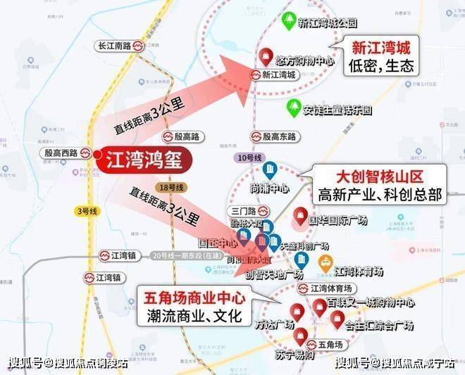 生活配套非常成熟,新业坊·源创就在西侧,吃喝玩乐都能满足,潮流、精致元素也为板块注入更多活力。殷高西路上还有永辉、长江国际、景瑞生活广场等商业。如果要大商圈,项目自驾到五角场商圈、宝山万达、悠方购物中心、大宁商圈、虹口龙之梦也十分便捷。