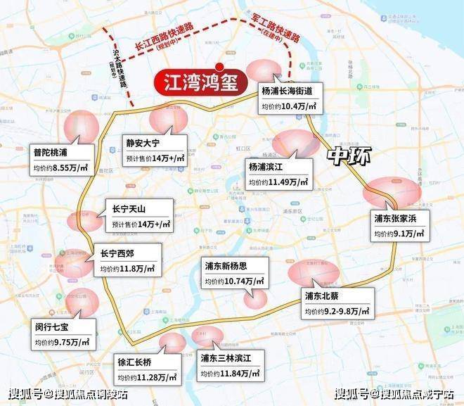 再来看中环沿线新房价格当前的格局。规划强势的如徐汇长桥,三林滨江,静安大宁,杨浦滨江等,价格全面突破11万+/㎡。