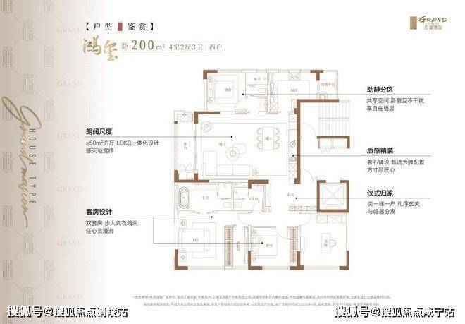 户型设计上,类一梯一户,方厅近50㎡,主卧超级套房。