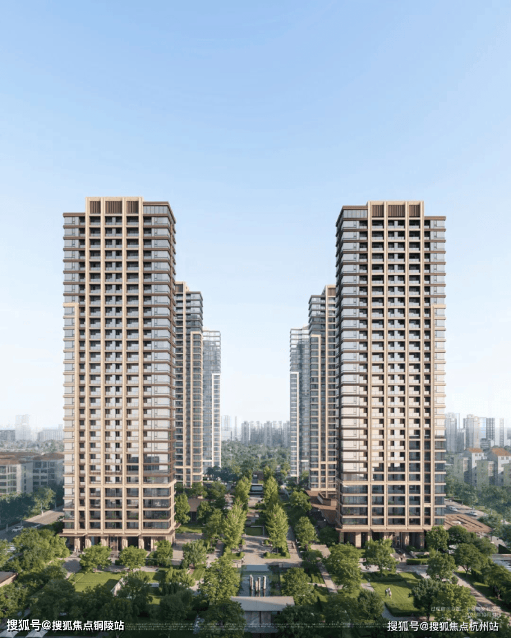 项目可视面都是古铜色金属铝板、米黄色铝板/石材、边套270°大转角飘窗,且从正面、侧面到背面,立面都保持精致统一。