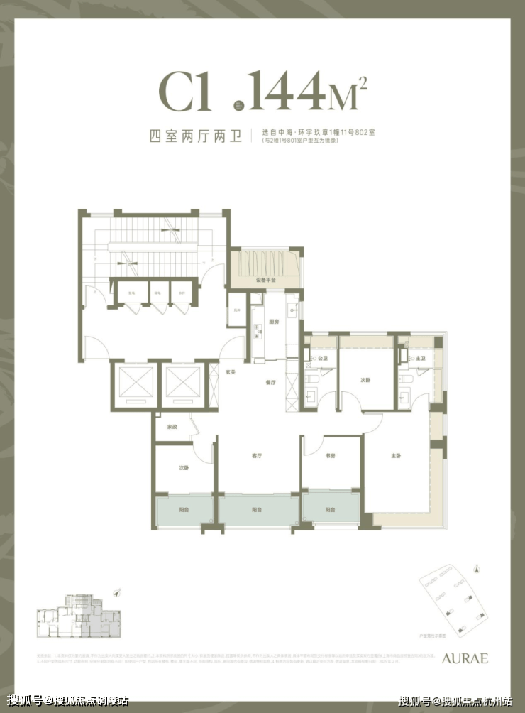 144边套户型:7.4平全明独立电梯厅,实得率超98%,超200m楼间距,视野无遮挡。南向面宽近14m,四开间朝南,独立玄关及约7.4平全明独立电梯厅,实得率超98%(含电梯厅),三阳台,满飘窗,设备平台,主卧室270°套间设计。层高3.15米。