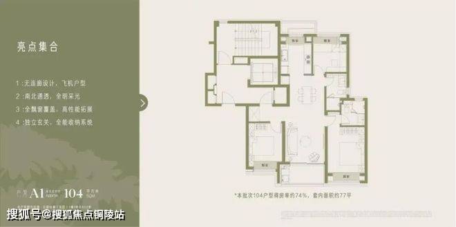 该楼栋的主力户型,即为前文提到的104㎡三房