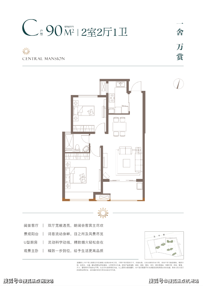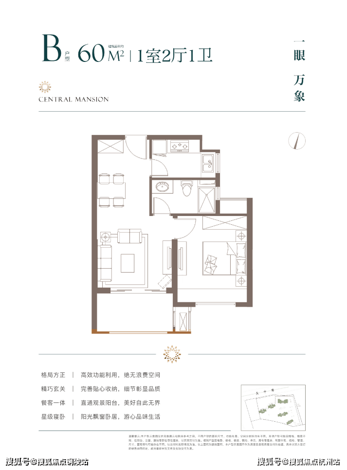 主力:60㎡1 房、90㎡2 房、125㎡3 房,户型方正、南北通透、动静分区,空间利用率高