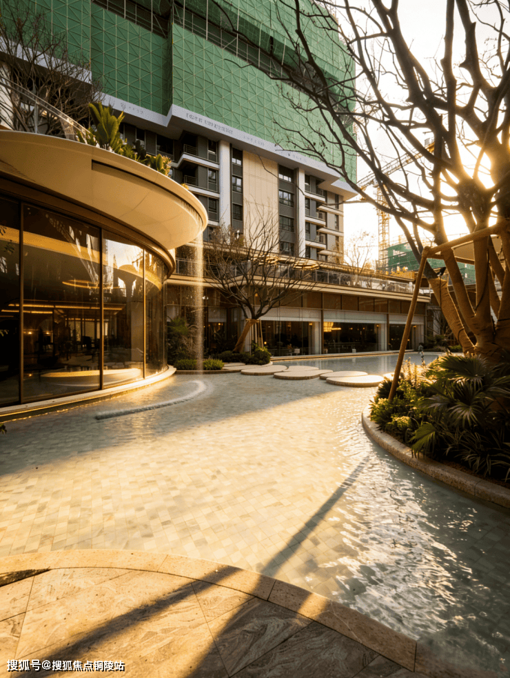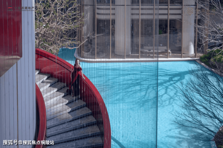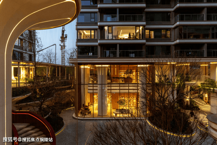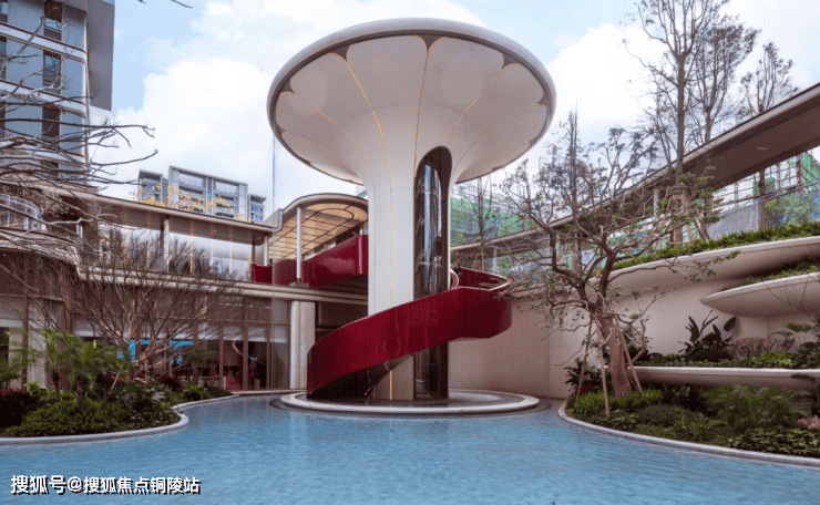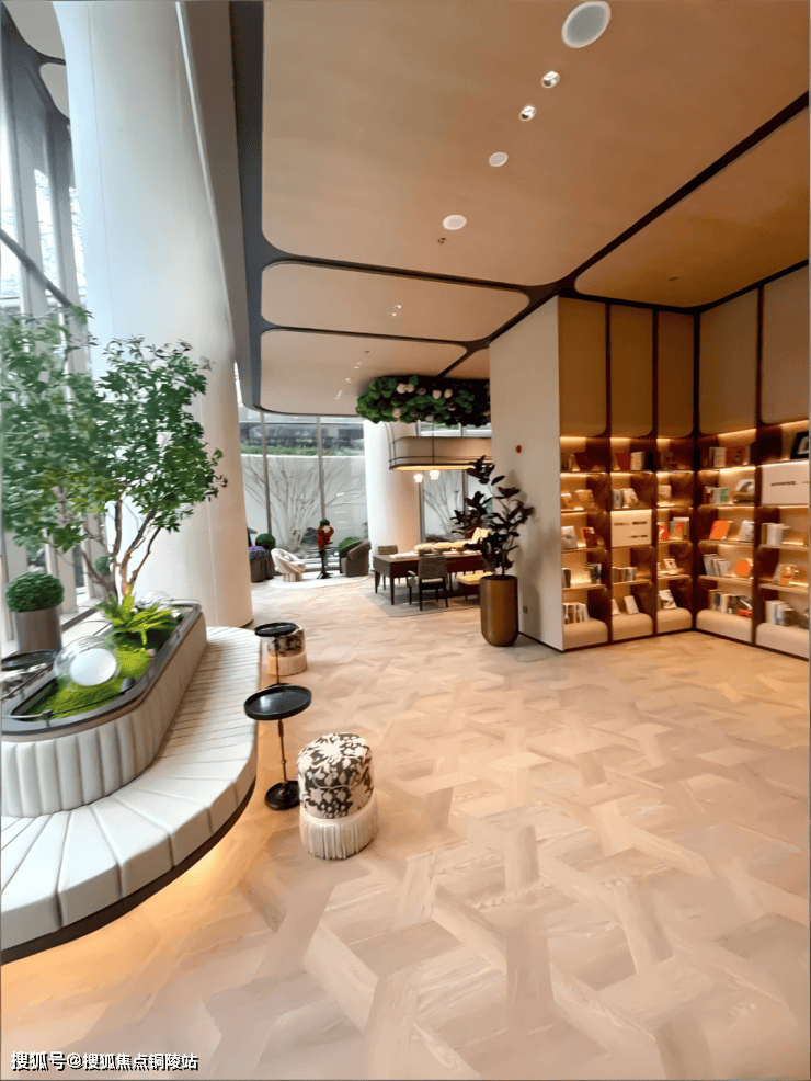 挑高约9米的双层书吧:一整面巨幕玻璃将水院景色框进室内,阳光穿过瀑布洒落书页,水声与翻书声轻轻应和。云间学堂与户外沙龙区:为孩子们提供席地而坐的阅读空间,也为社区音乐会随时上演提供舞台。此外,那座12米高的艺术水幕旋梯,堪称社区的“艺术坐标”,拾阶之间,光影流转,每一步都提醒你:生活,值得被认真对待