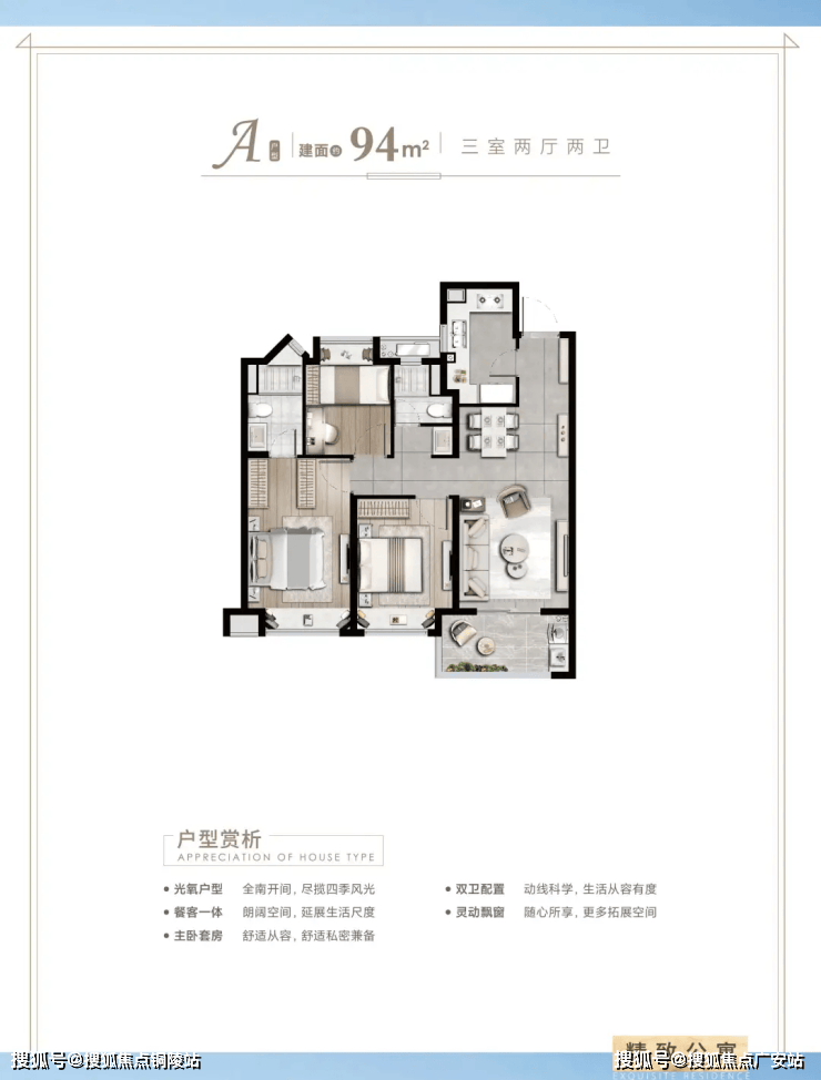 户型设计实用:高层主力户型如86㎡三房,实现双开间朝南、双阳台、270°飘窗,得房率75%-79%,空间利用率高。