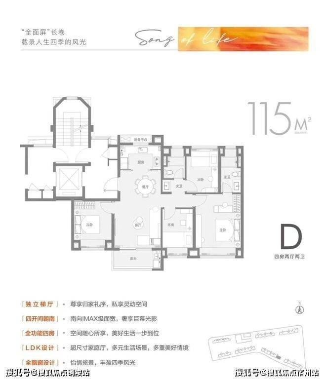 另一方面,建面约88-115㎡房型,做到了无连廊设计,电梯厅直接入户!