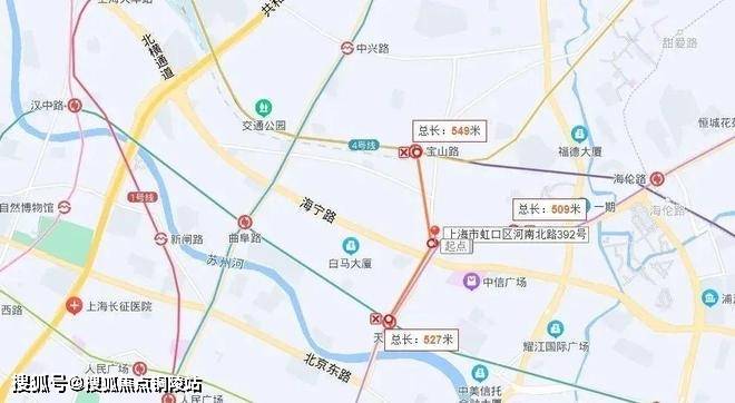 项目距离北外滩核心区,只隔了一条海宁路,距离外白渡桥、外滩源、苏州河都在直线约900米范围内。项目靠近轨交10号线四川北路站,周边还有3号线、4号线、12号线。