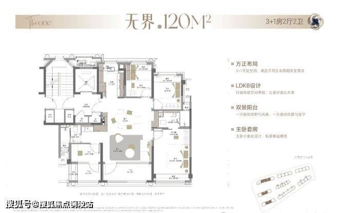 整体布局与140㎡户型基本一致,双南向阳台、独享电梯厅、6飘窗等户型拓展面积超过18㎡!