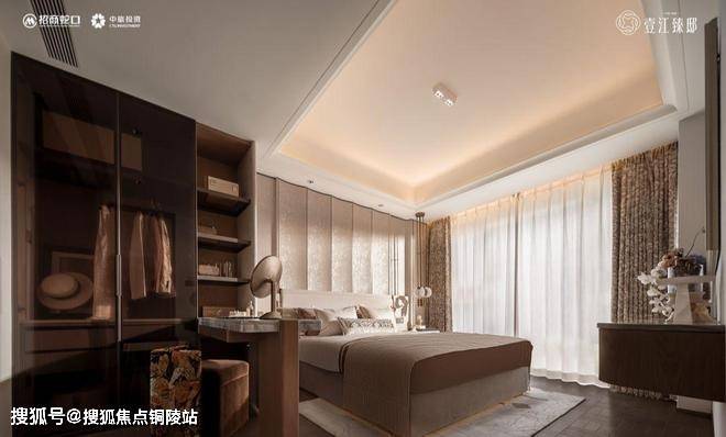 主卧套房的设计同样突破想象。整体面积约25㎡,更是在约270°转角飘窗的基础上,增设靠窗休闲沙发区,形成独立的“微型休憩系统”。