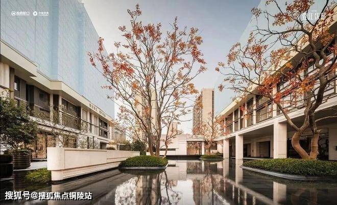 超千方镜面主题水院,时刻演绎自然与建筑的无界之美:澄澈镜面水面倒映建筑肌理与天光云影,搭配三株原生丛生乌桕的点缀,与回廊、浮岛相映成趣,营造出静谧雅致的亲水意境,这种沉浸式水景体验生活,在张江高端住区中尤为稀缺。