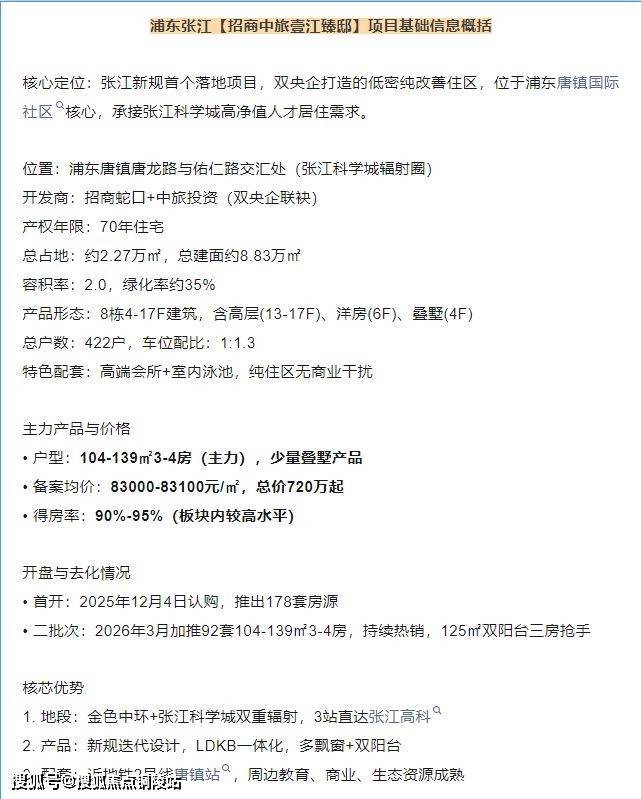 世界张江,唐镇核心,浦东迭代新规首作「招商中旅·壹江臻邸售楼处电话:400-9699-334✨【官方认证】✅✅✅」加推92套建面约104-139㎡3-4房,过会均价83100元/㎡,泳池会所+双阳台+多飘窗样板房已正式开放!