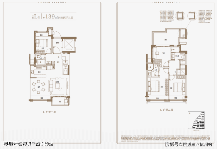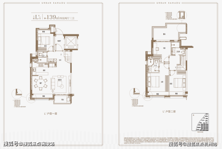 建面约139㎡上叠户型,三层是会客区,四层是居住区,阳台+露台+多个飘窗设计,附加空间非常大,在别墅类产品中实属罕见!