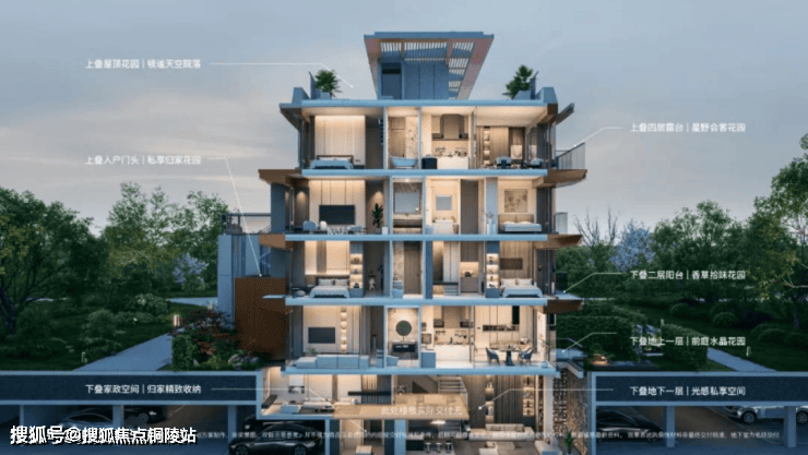 在这个立体空间体系中,摒弃了叠加别墅中资源更加集中在下叠、而忽略上叠居住尺度的传统设计,而是做到了史诗级的创新,实现真正的平权——