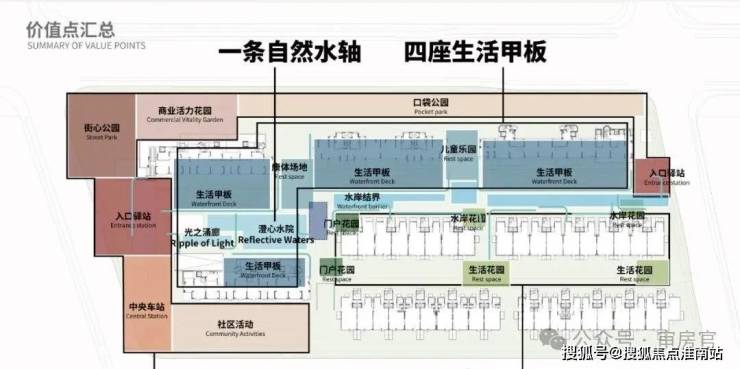 以自然水系为界,生长为独立的城市岛屿,通过六大景观节点,浮水之门、光之通廊、澄心水院、岸野森活、溪语花境、林语归岸,具象生活本应如流水般自在从容。