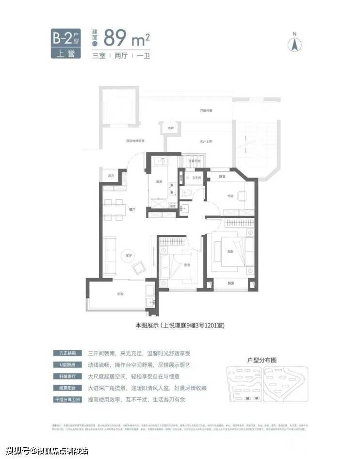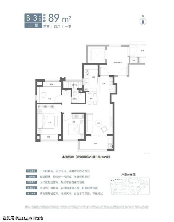 在对百平左右的三房,功能性要求越来越高的今天,国贸虹桥璟上约105㎡户型做到了每一平空间的合理利用,实现了尺度感与功能性兼备,出众产品更出圈,当然备受欢迎。