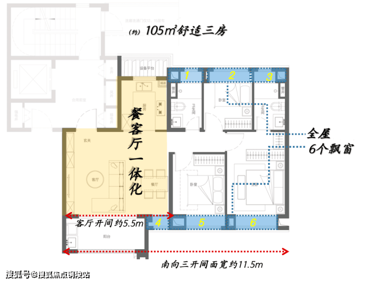 优越的窗墙比,可以最大限度将优美的景观纳入眼帘;南向三开间面宽更是达到了约11.5米,可以说市场同户型面积段产品很难做到这样极致化;功能房间以舒适度为导向服务生活,尺度均做到了当下主流产品水平之上;并且全屋附赠6处飘窗,高附加值令人心动。