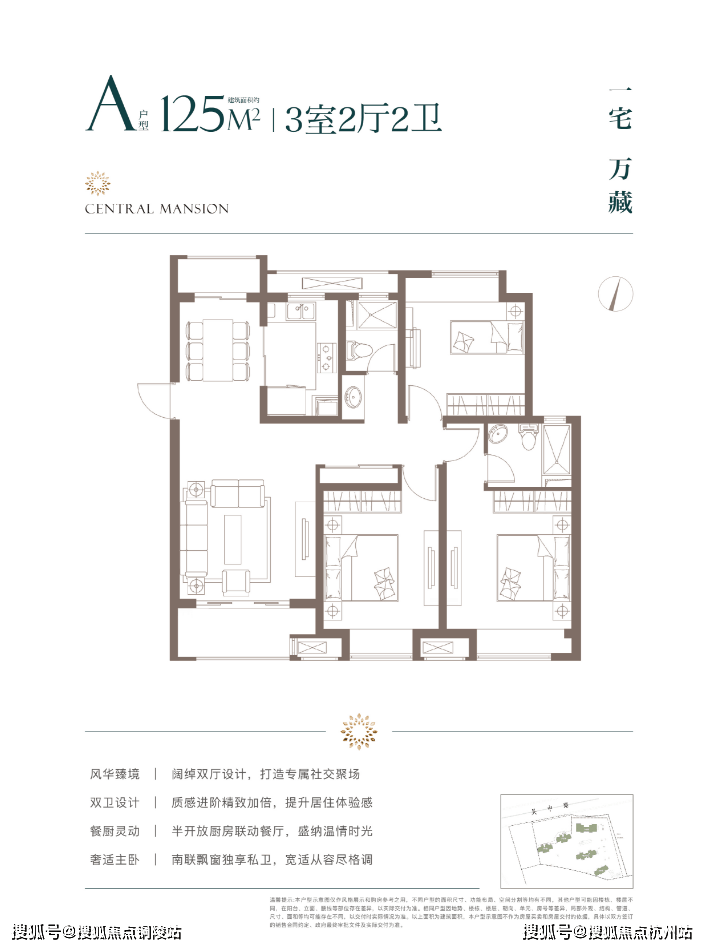 主力:60㎡1 房、90㎡2 房、125㎡3 房,户型方正、南北通透、动静分区,空间利用率高