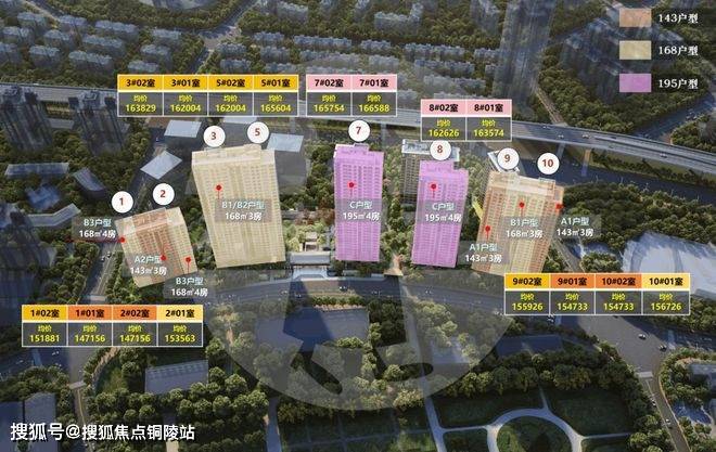 项目5栋建筑采用了南向一字排开的设计,价格梯度简单明了,呈现的是“中间高、两边低”的定价模式。虽然每栋楼都有南向瞰江面,但由于正前方的南市水厂配套有集中绿化,因此绿化在南向视野的占比也是定价的重要条件之一。我们可以理解为“看边角”还是“看全景”的概念。正中间的3、5、7、8#号楼栋,直面“江景+绿化”、不带转角,因此定价都在16万/㎡的均价之上。