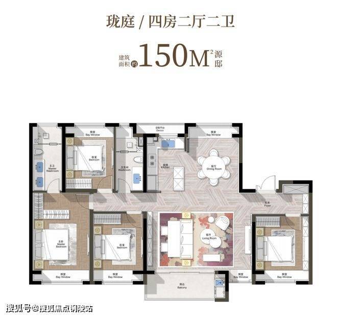 建筑面积约150㎡奢阔四房:如果说110㎡是精研功能,那150㎡则是追求尺度。净面宽6.1米的横厅设计,带来IMAX级的采光和观景面,是家庭聚会、朋友派对的理想场所。双卫配置与全龄四房布局,则赋予了户型陪伴家庭成长的“全生命周期”能力,是城市精英真正意义上一步到位的品质之选。