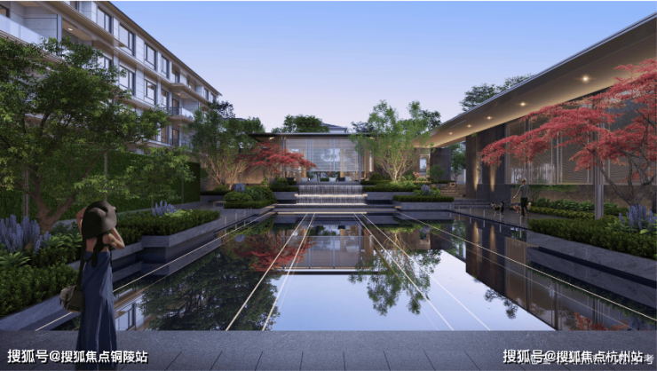 中央水景联动地面景观及地下会所空间,通过三层叠水形成了特色鲜明的水景庭院,引领未来社区发展新趋势。