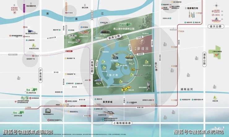 项目位干上海之鱼内,东侧是极具特色的金汇港,水脉碧波倒映生态景观。坐拥约万亩林地,占地面积约4.78平方公里南上海中央公园,更拥享上海之鱼约13公顷环湖景观带和集艺术展览、活力健身、娱乐休闲、游憩观赏为一体的现代城市公园群。