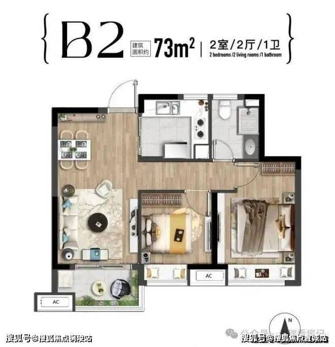在产品类型方面,云湾4幢高层均为建面约73-74㎡高层2房,一起来看: