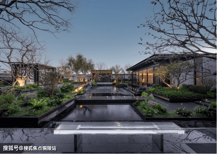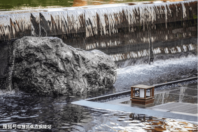 又比如,项目延续了张园“引水入园”的理念,将长200m近1000m²的水系覆盖到整个社区内。水景形态各异,有中心静水、三层跌水、点状涌泉、立面叠瀑、弧形流水五大不同呈现方式。水系的引入,让整个社区彻底灵动飘逸了起来。