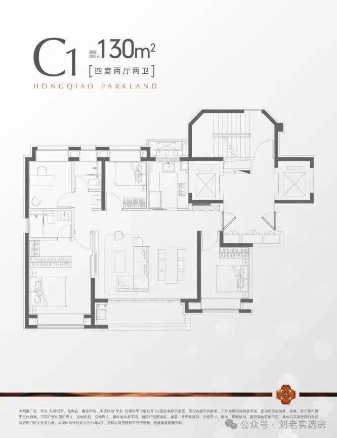 ·建面约130m²四房两厅两卫,改善置业一步到位!